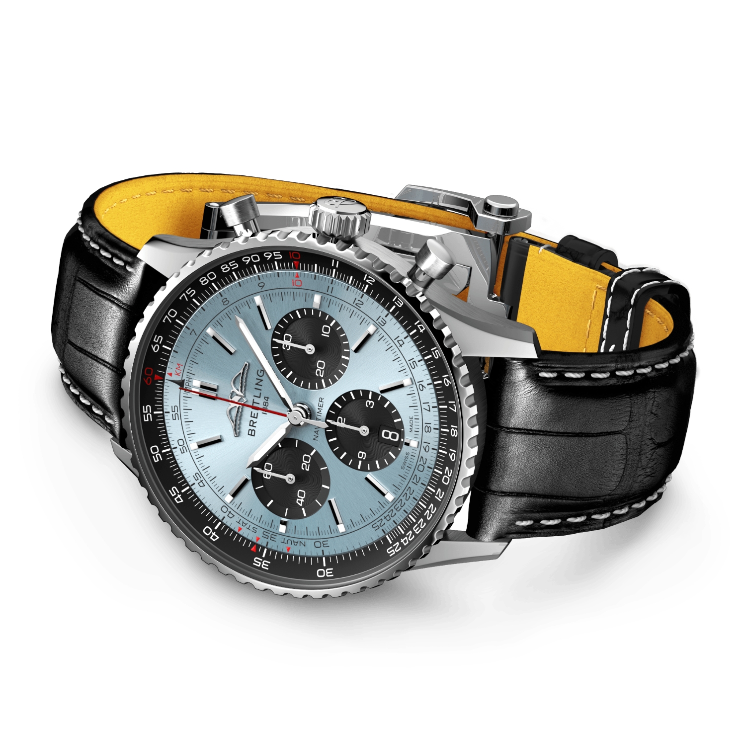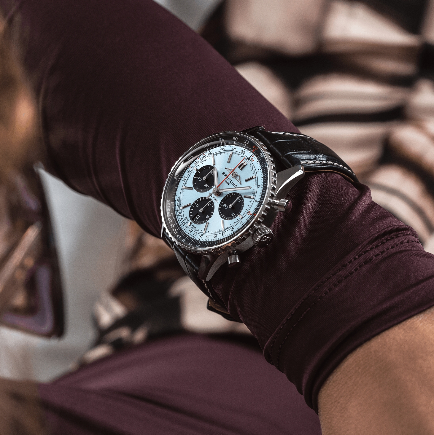 Breitling’s iconic pilot’s chronograph – for the journey. In 1952, Willy Breitling developed a wrist-worn chronograph with a circular slide rule that would allow pilots to perform all necessary flight calculations. Two years later, the Aircraft Owners and Pilots Association (AOPA) announced the design as its official timepiece. The “navigation timer” – or Navitimer – was born. The AOPA was (and remains) the largest pilots’ club in the world, counting nearly every US aviator among its ranks. As the defacto pilot’s watch throughout the glory days of civil aviation, the Navitimer was worn by airline captains and aircraft enthusiasts. It even made its way into space on the wrist of astronaut Scott Carpenter in 1962. And it wasn’t only pilots drawn to the watch’s irrepressible aesthetic. Celebrities of the day such as Miles Davis and Serge Gainsbourg were devotees, proving that the Navitimer had style as well as function. There have been many iterations of Breitling’s icon since its debut 70 years ago, but this new Navitimer captures its most classic features, while enhancing them with modern refinements. A flattened slide rule and a domed crystal create the illusion of a sleeker profile. Alternating polished and brushed metal elements give a lustrous, yet understated finish. Most notably, new colors in shades of blue, green and copper, define the updated dial options. And if there is one update sure to spark nostalgia, it’s the return of the AOPA wings to their original position at 12 o’clock. For 70 years, Breitling’s original pilot’s watch has been beloved by aviators and tastemakers in equal measure. Worn by astronauts in space and the biggest stars on earth, it is Breitling’s most iconic timepiece and one of the most recognizable watches of all time.