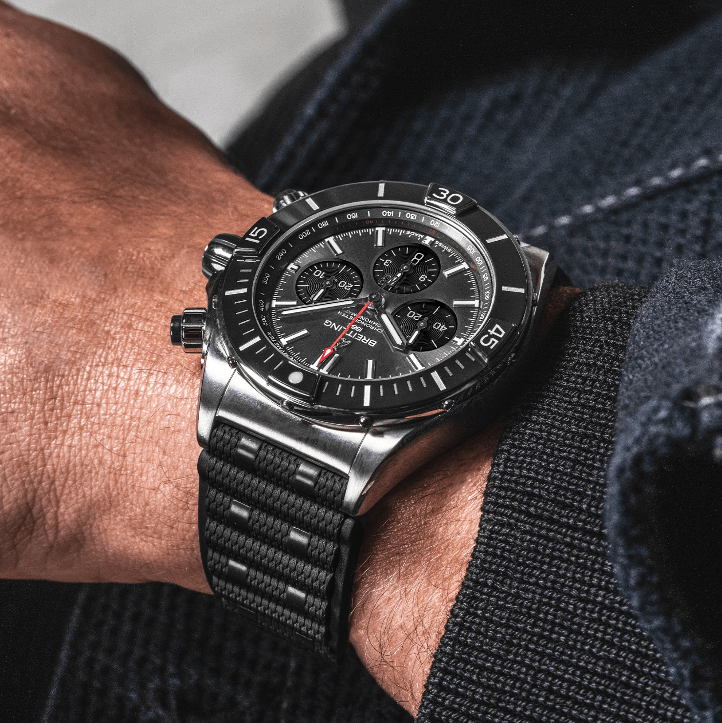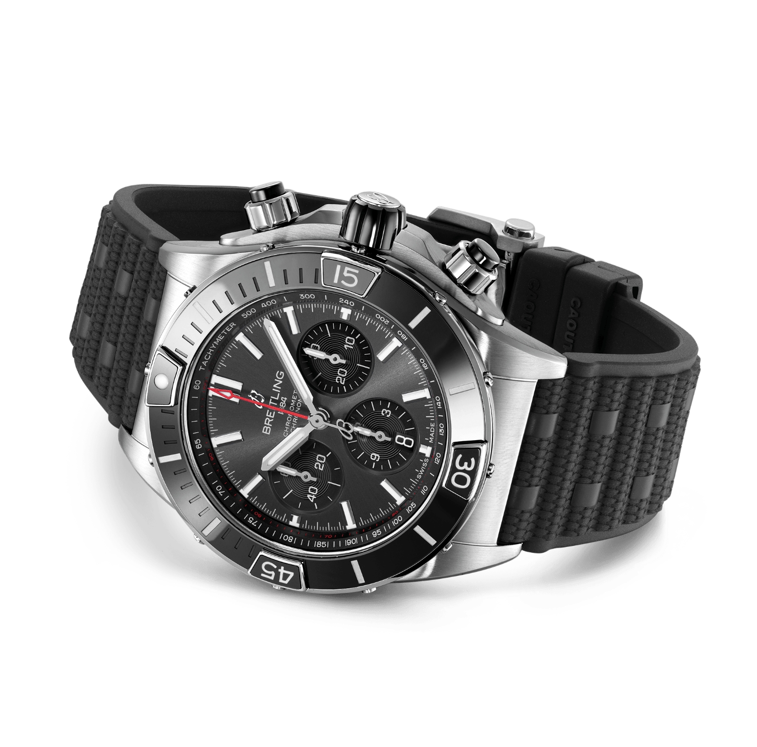 Breitling’s supercharged watch for your every pursuit. The Super Chronomat is inspired by the original 1980s Chronomat that Breitling created for the hotshots of aerobatic squadrons. The boldest of all Chronomat watches, the Super Chronomat features several ceramic inserts – on the bezel, on the chronograph pushers and on the crown – as well as a Rouleaux-inspired rubber strap. Still, this all-purpose sports watch won’t get in the way of your sense of style. The Super Chronomat comes in several colour and metal variations, from stainless steel to 18 k red gold. It either features the iconic Rouleaux bracelet or a rubber Rouleaux-inspired strap, matched with a folding clasp. The Super Chronomat B01 44 is powered by the Breitling Manufacture Calibre 01, a COSC-certified chronometer.