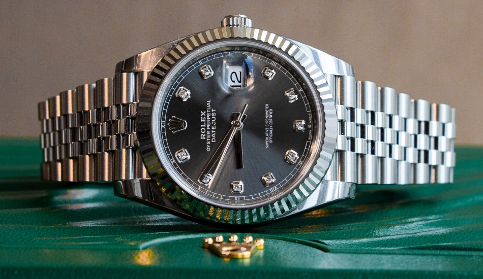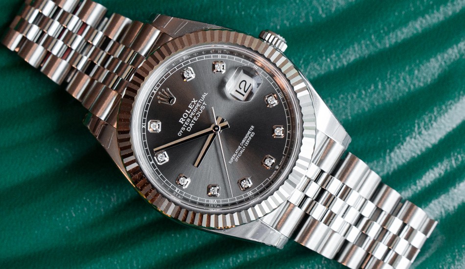 This is a brand-new Rolex Datejust ref. 126334. It features a 41mm diamond-set slate dial. Featuring a Jubilee Bracelet, this watch looks sophisticated and graceful.